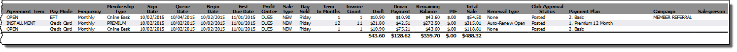| PIF | Paid-in-full amount collected when the agreement was signed |