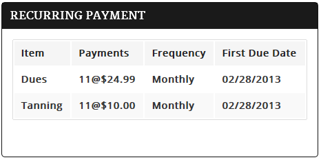 - Recurring Payment: The amount you will owe on a recurring basis, followed by the payment schedule (For example, $34.99 per month).