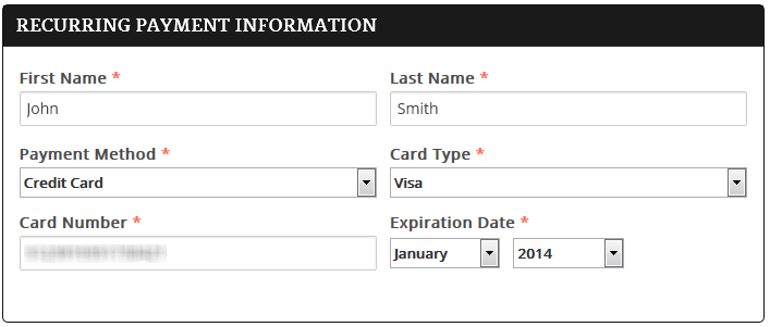 - Card Type: American Express, Discover, MasterCard, or Visa